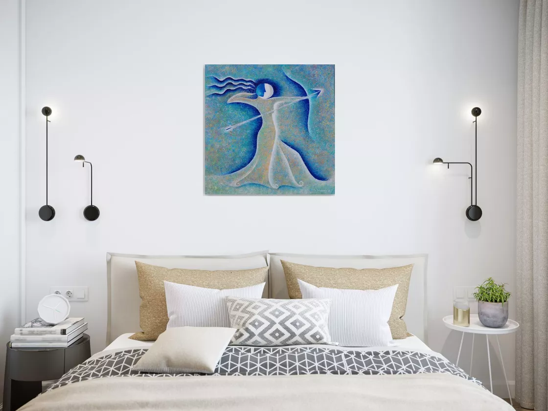 100% handmade colourful acrylic painting titled "Artemis" was created with bright acrylic colours on a premium quality 100% cotton canvas. Multi-layered rich texture. Silver tint.