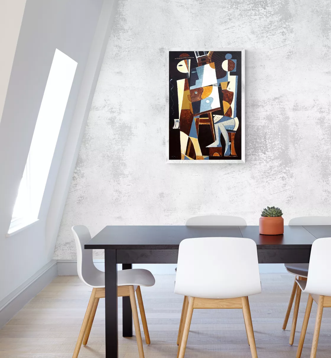 Vertical composition, richly textured, high contrast. In dark brown, grey, and ochre tones. Earth pigments palette.