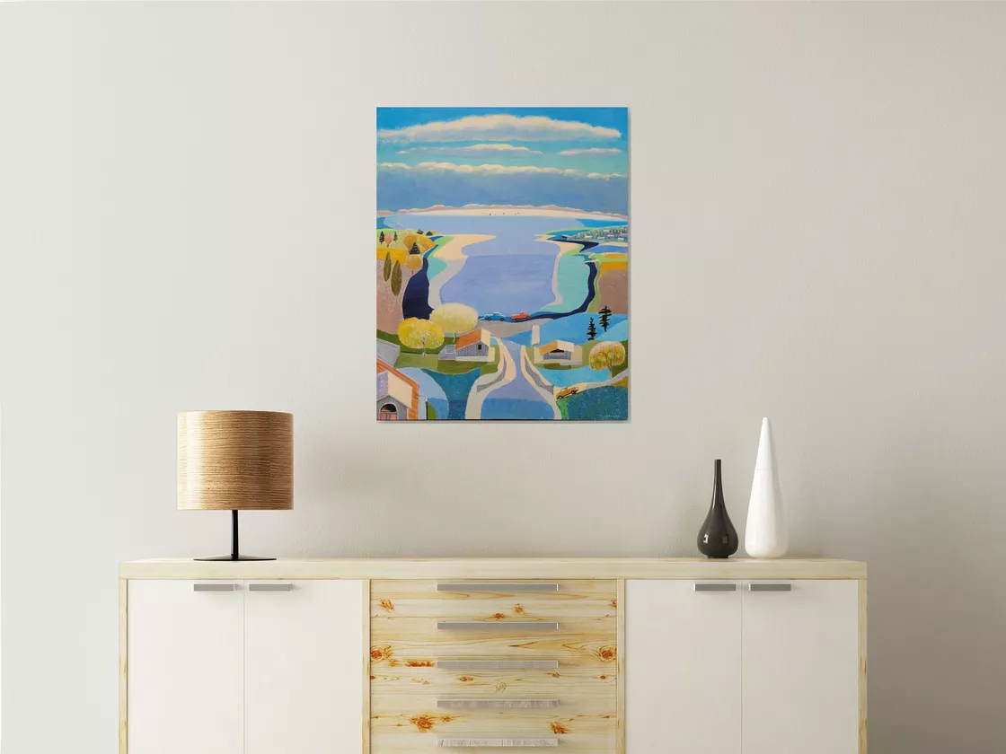 Ready to hang artwork. Ideal or a living room, dining room, bedroom, or office modern interior.