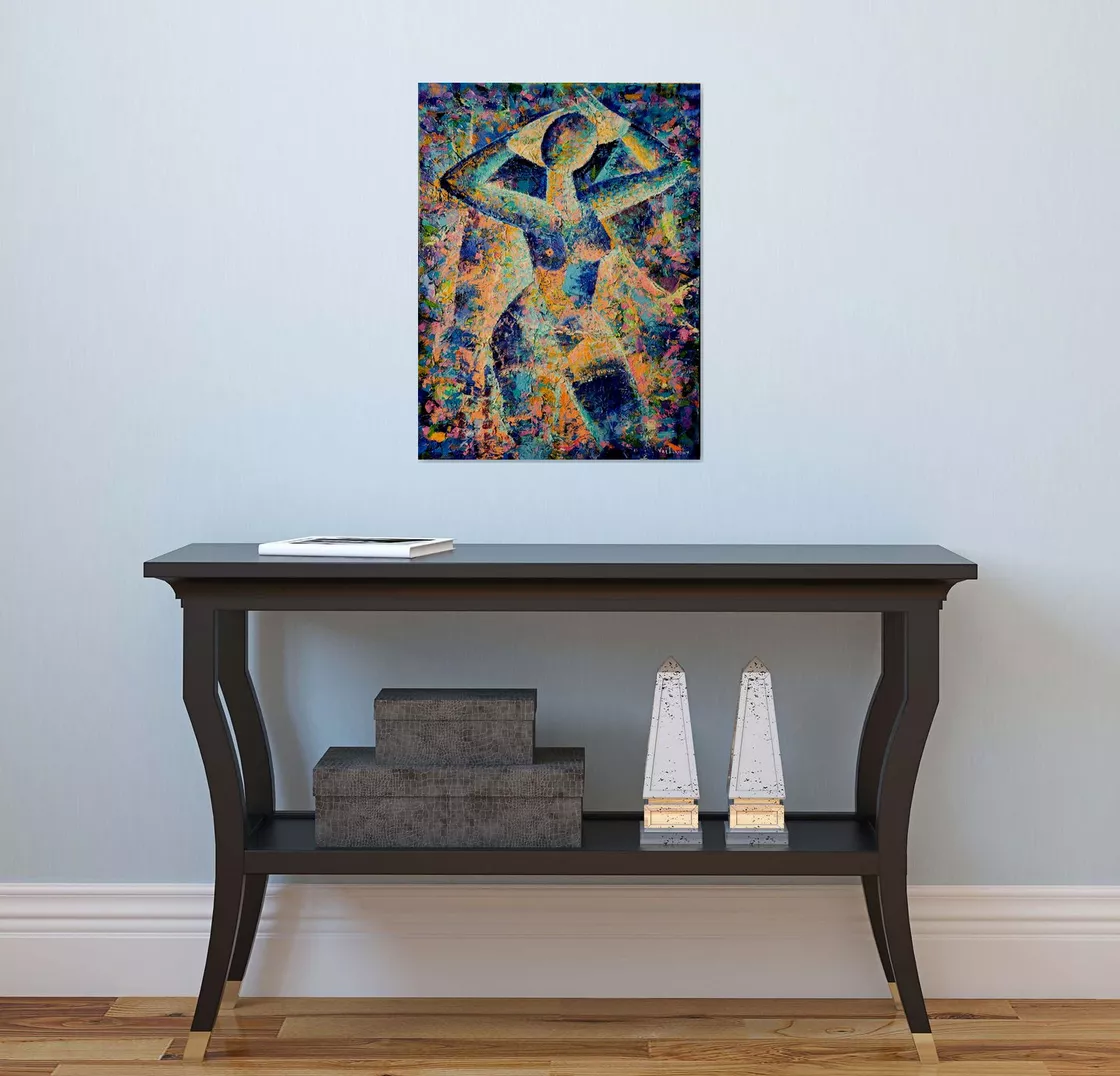 100% handmade colourful acrylic painting titled "Indian Dancer" was created with bright acrylic colours on a premium quality 100% cotton canvas.