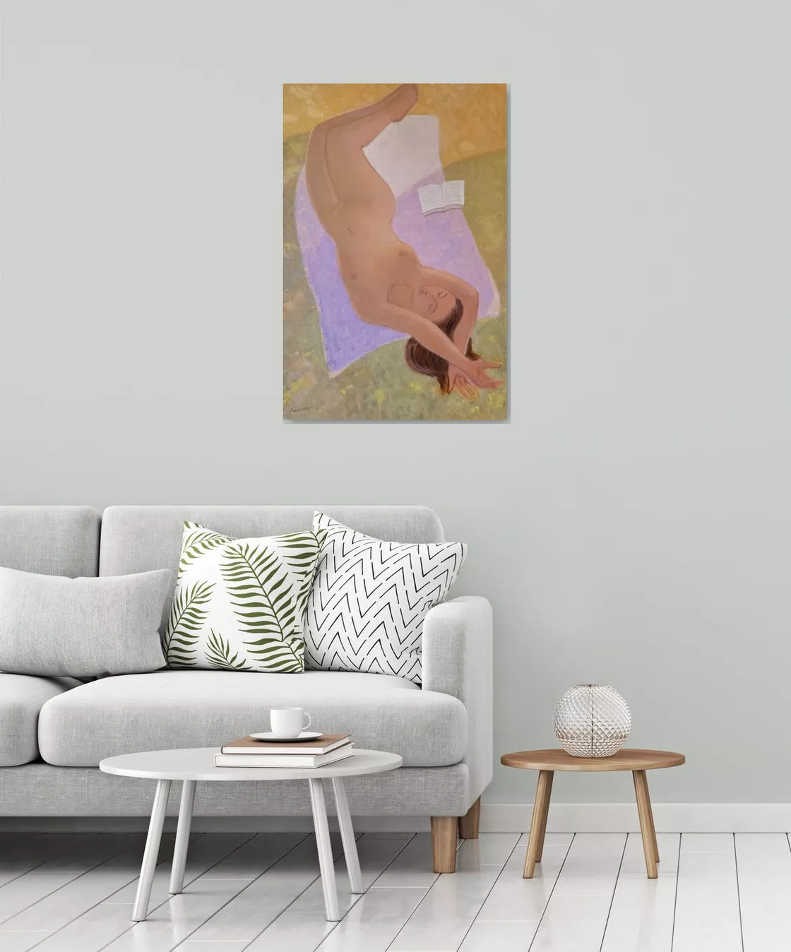 100% handmade colourful oil painting titled "Nude with Book" was created with premium quality oil colours on a 100% cotton canvas. The edges are painted to prolong the painting.
