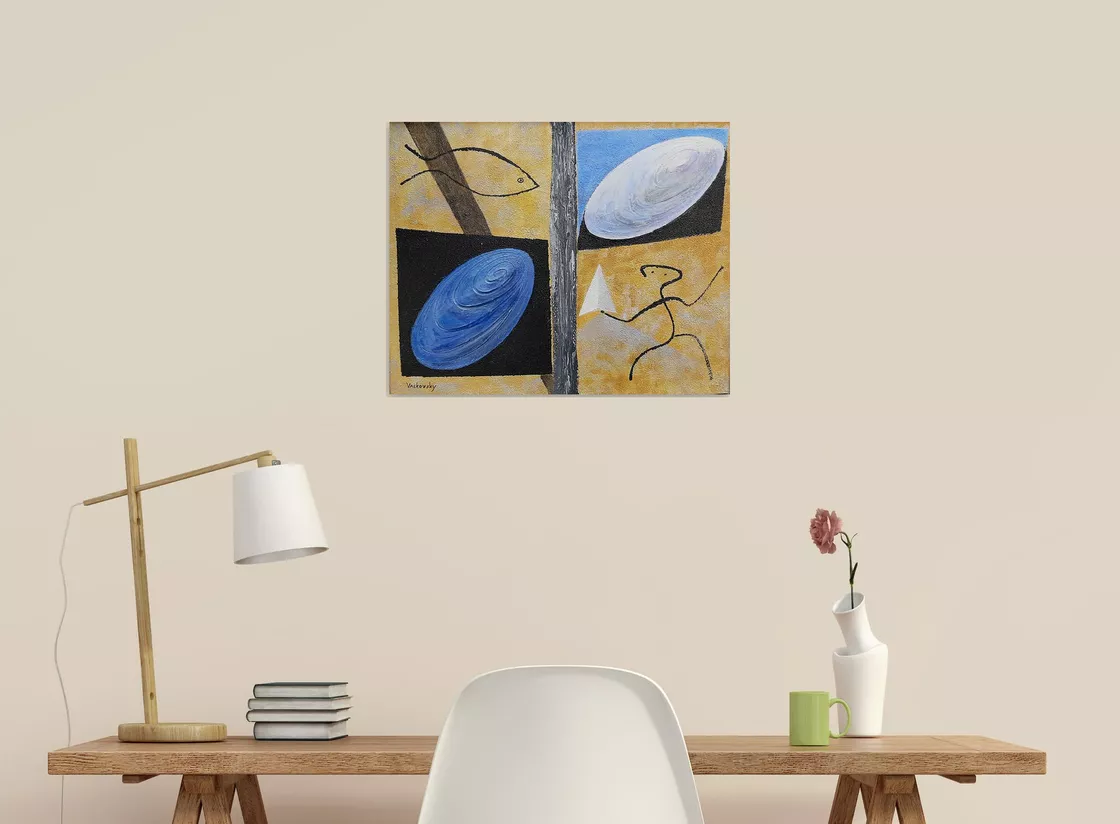 Ready to hang artwork. Ideal or a living room, dining room, bedroom, or office modern interior.