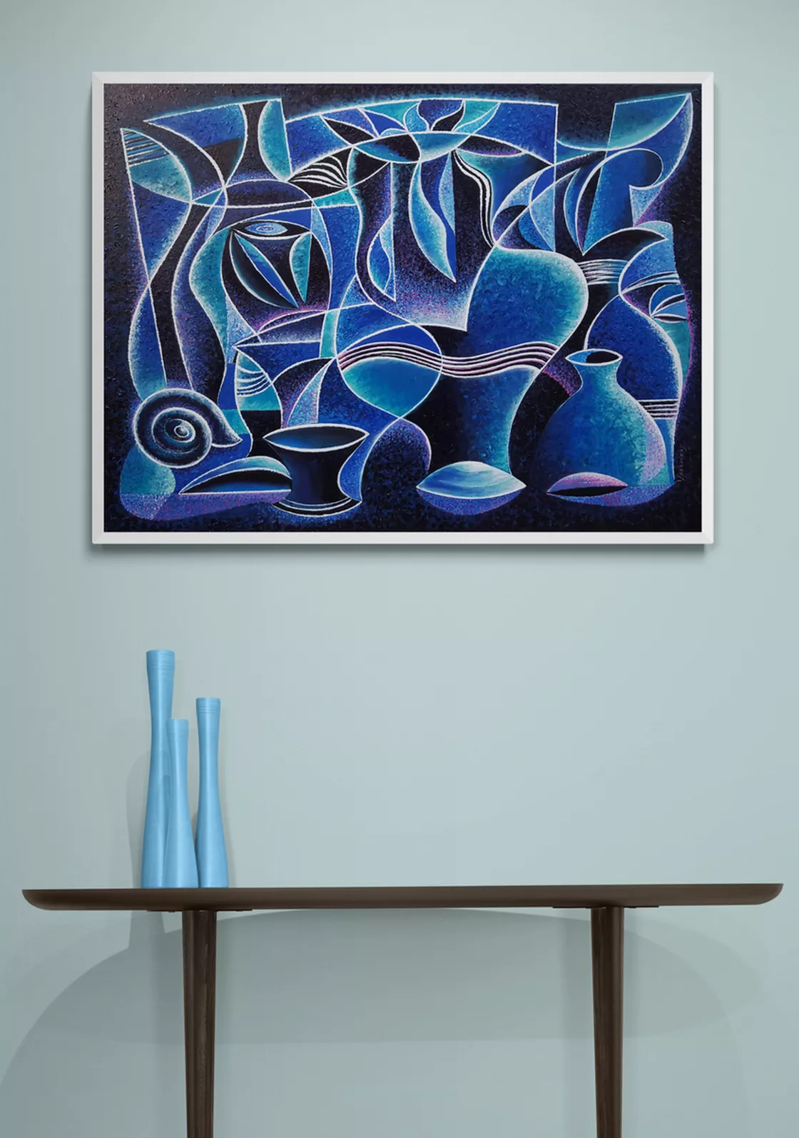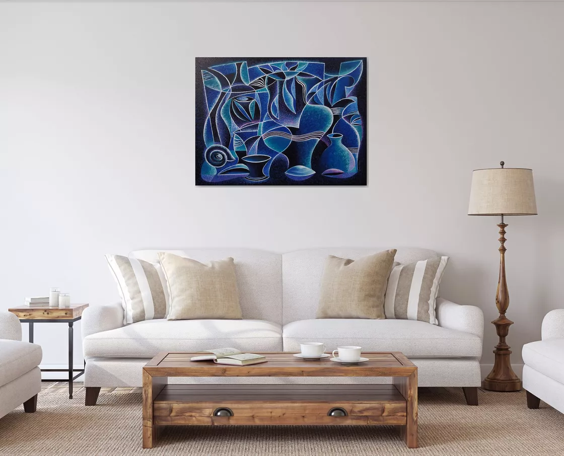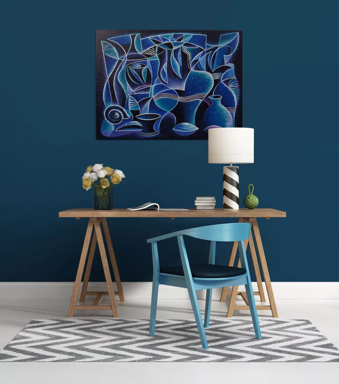 Ready to hang artwork. Ideal or a living room, dining room, bedroom, or office modern interior.